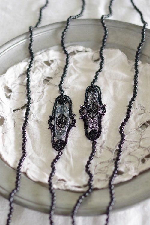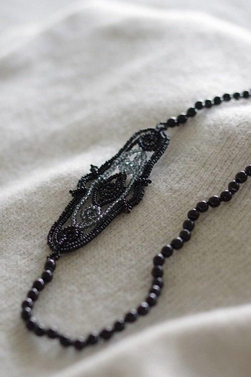 モチーフ部分は艶やかなブラックのビーズを中心に