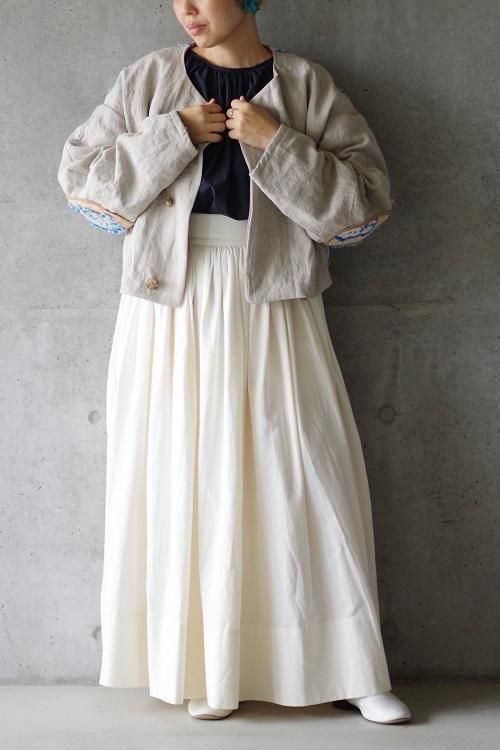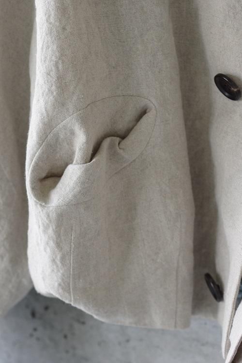 前身頃のリネン地も甘く撚ったリネン糸で織り上げた