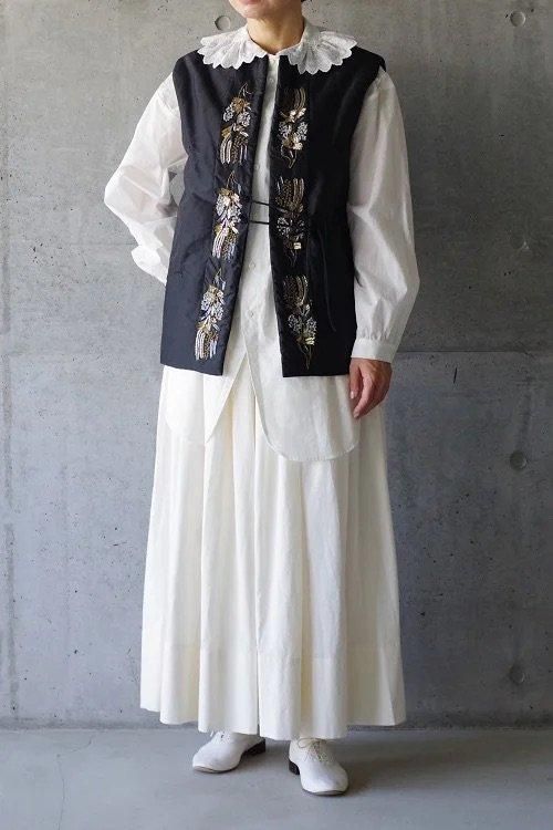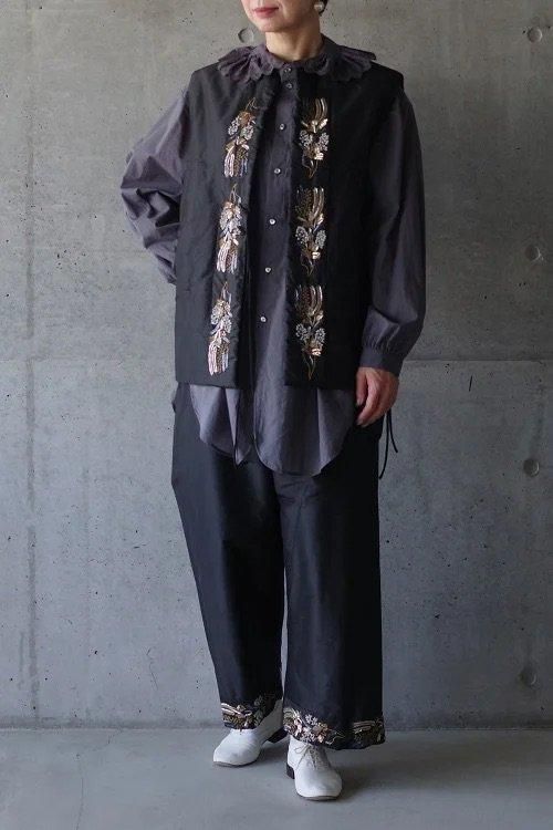 シルクシャンタン生地に、インドの刺繍工房でひと針ひと針、